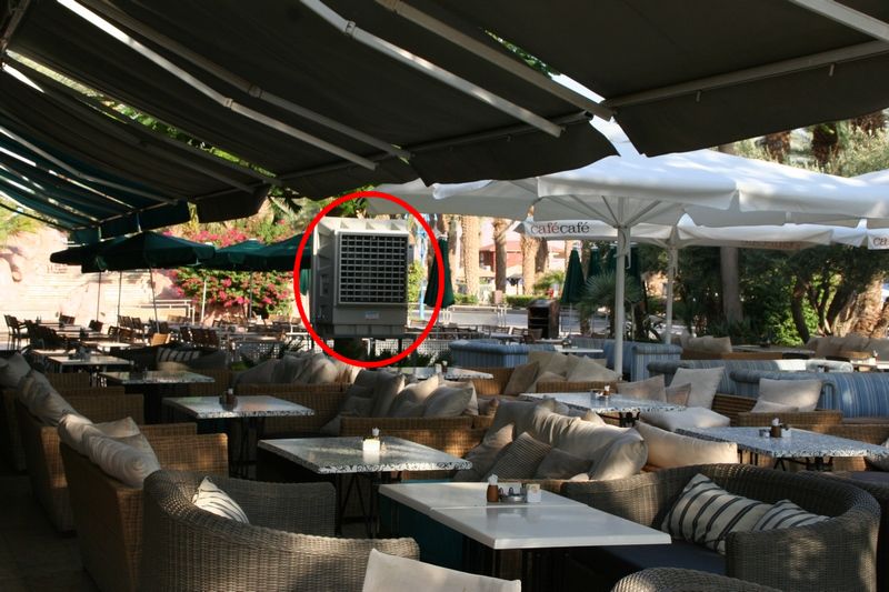 夏日高溫,溫度高達(dá)35度,戶外根本無法久坐,客戶要求使戶外咖啡店的區(qū)域內(nèi)降溫5-15度左右,我們推薦購買移動工業(yè)冷風(fēng)機(jī) KT-1B,因?yàn)閼敉鉄o法封閉,不能使用空調(diào),使用風(fēng)扇吹出來的風(fēng)也是熱風(fēng),無法達(dá)到降溫效果,使用移動工業(yè)冷風(fēng)機(jī) KT-1B,任何場合都可以使用,出風(fēng)量大,風(fēng)力強(qiáng)勁,可以快速降溫,出風(fēng)清涼,可以使客戶在出風(fēng)范圍內(nèi)感到清爽舒適。